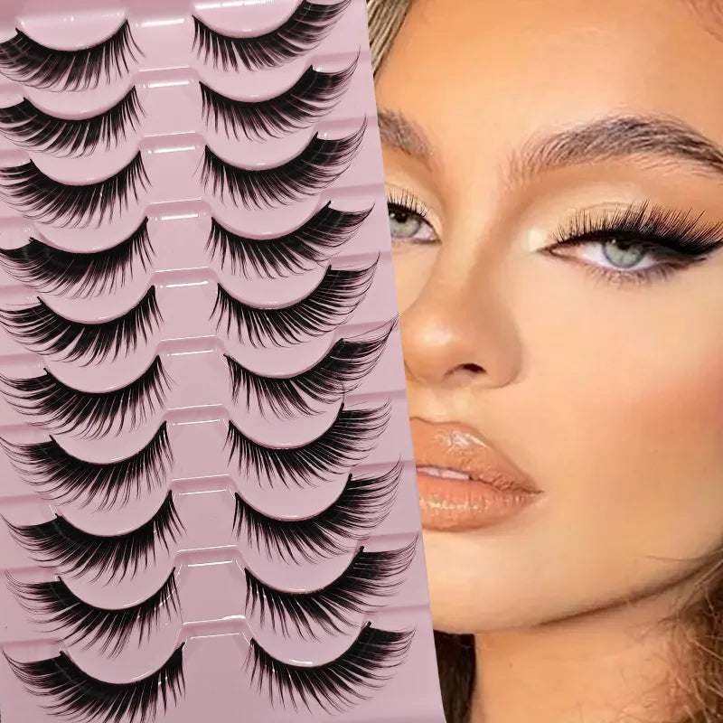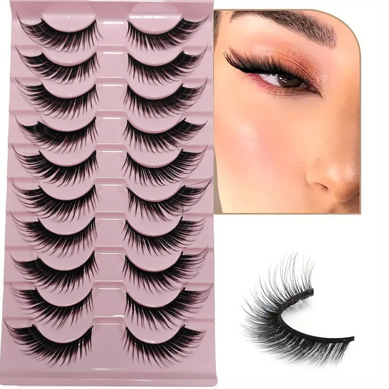 False Eyelashes Russian Strip Lashes Extension D-Curl Faux Mink Lashes 3D Effect False Eyelashes 10 Pairs