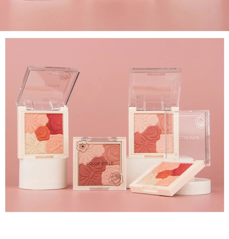 Makeup Blush Palette Natural Contour Highlight Palette Matte Pearlescent Embossed Petal Orange Blush Rouge Petal Blush Palette